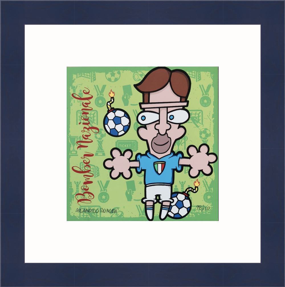 Aleandro Roncarà “Bomber nazionale” serigrafia su cartone cm. 20×20. Si rilascia certificato di garanzia della nostra galleria ai sensi di Legge del 20.11.1971 n.1062 art. 2.