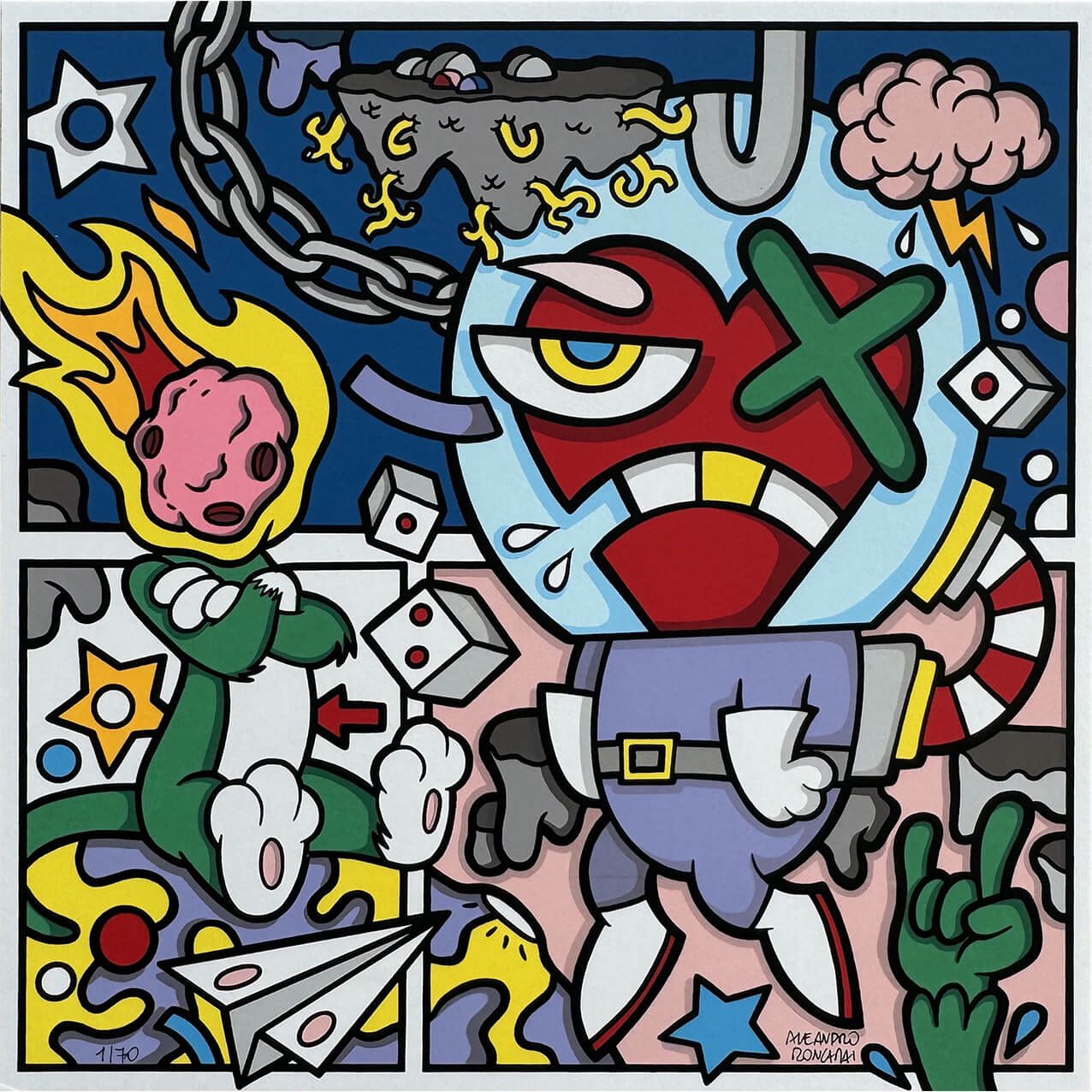 Aleandro Roncarà “Qualcuno ha detto gatto verde” serigrafia su cartone cm. 30×30. Si rilascia certificato di garanzia della nostra galleria ai sensi di Legge del 20.11.1971 n.1062 art. 2.