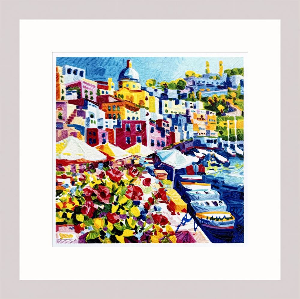 Athos Faccincani “Un istante di bellezza a Procida” serigrafia su cartone cm. 30×30, edizione in 99 esemplari firmati e numerati manualmente dall’artista.