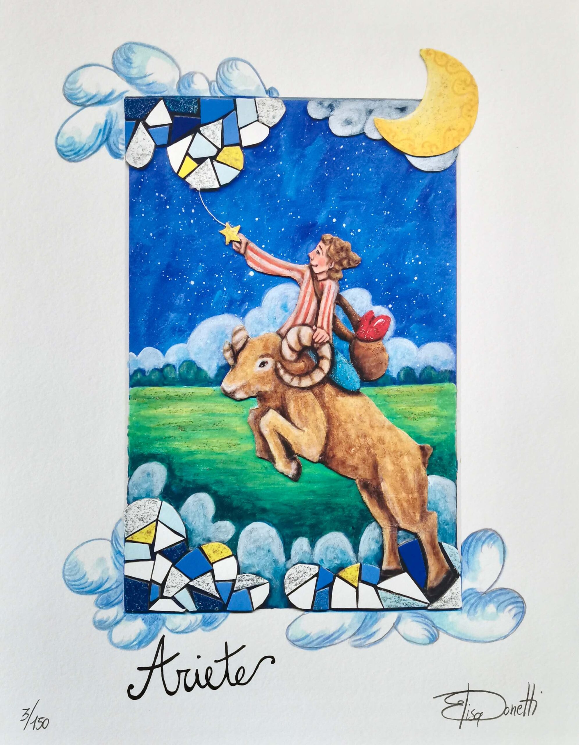 Elisa Donetti “Ariete” giclée su carta cm. 32×25, edizione in 150 esemplari in numeri arabi firmati e numerati manualmente dall’artista.