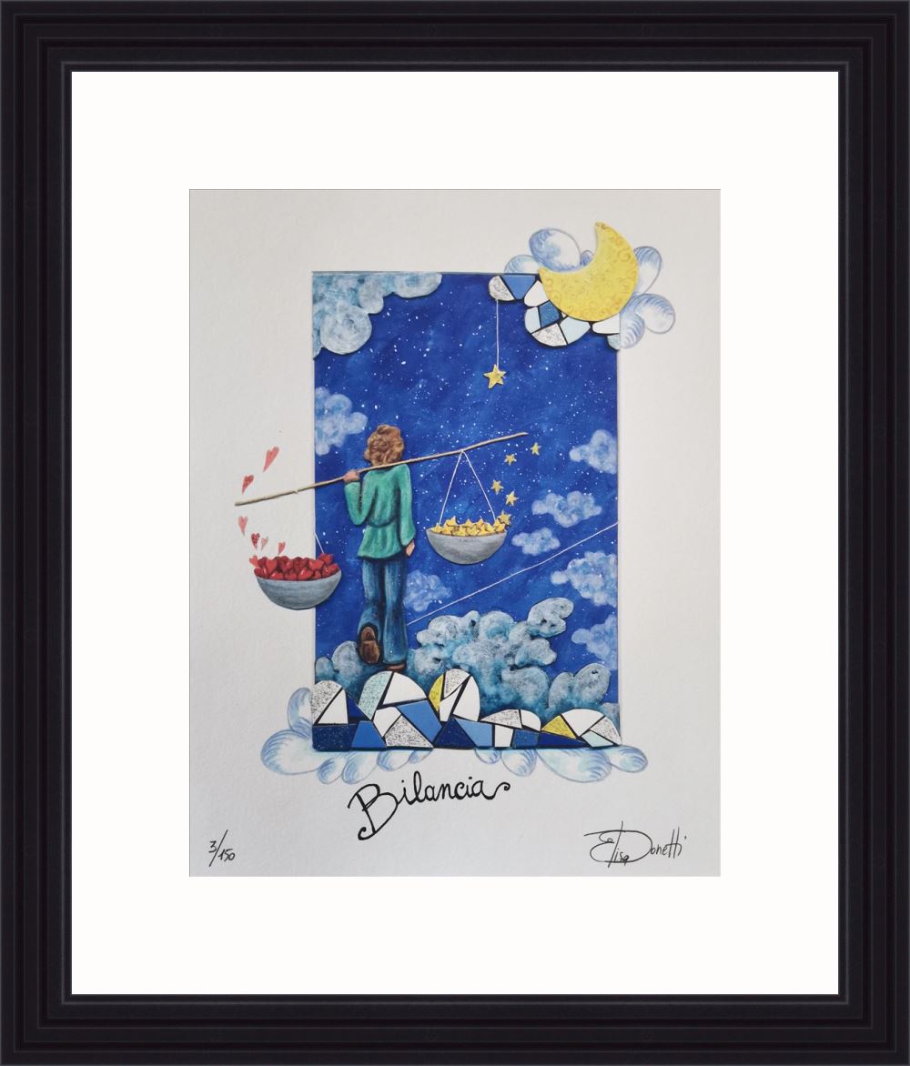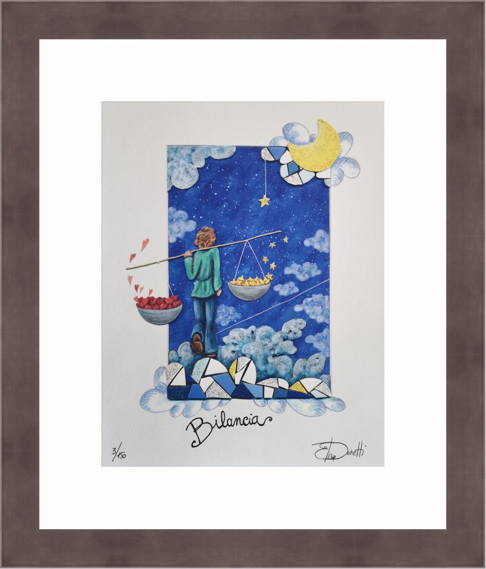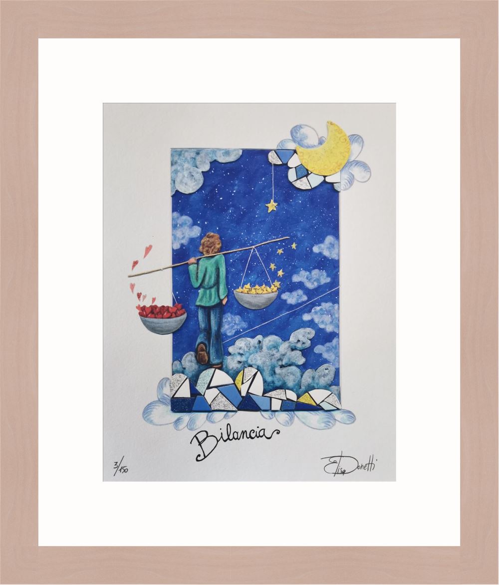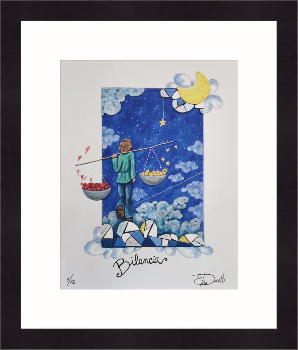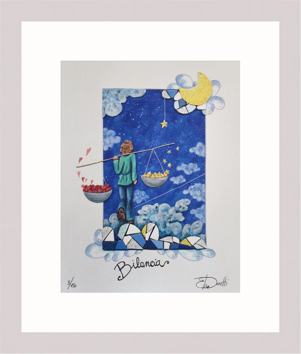 Elisa Donetti “Bilancia” giclée su carta cm. 32×25, edizione in 150 esemplari in numeri arabi firmati e numerati manualmente dall’artista.