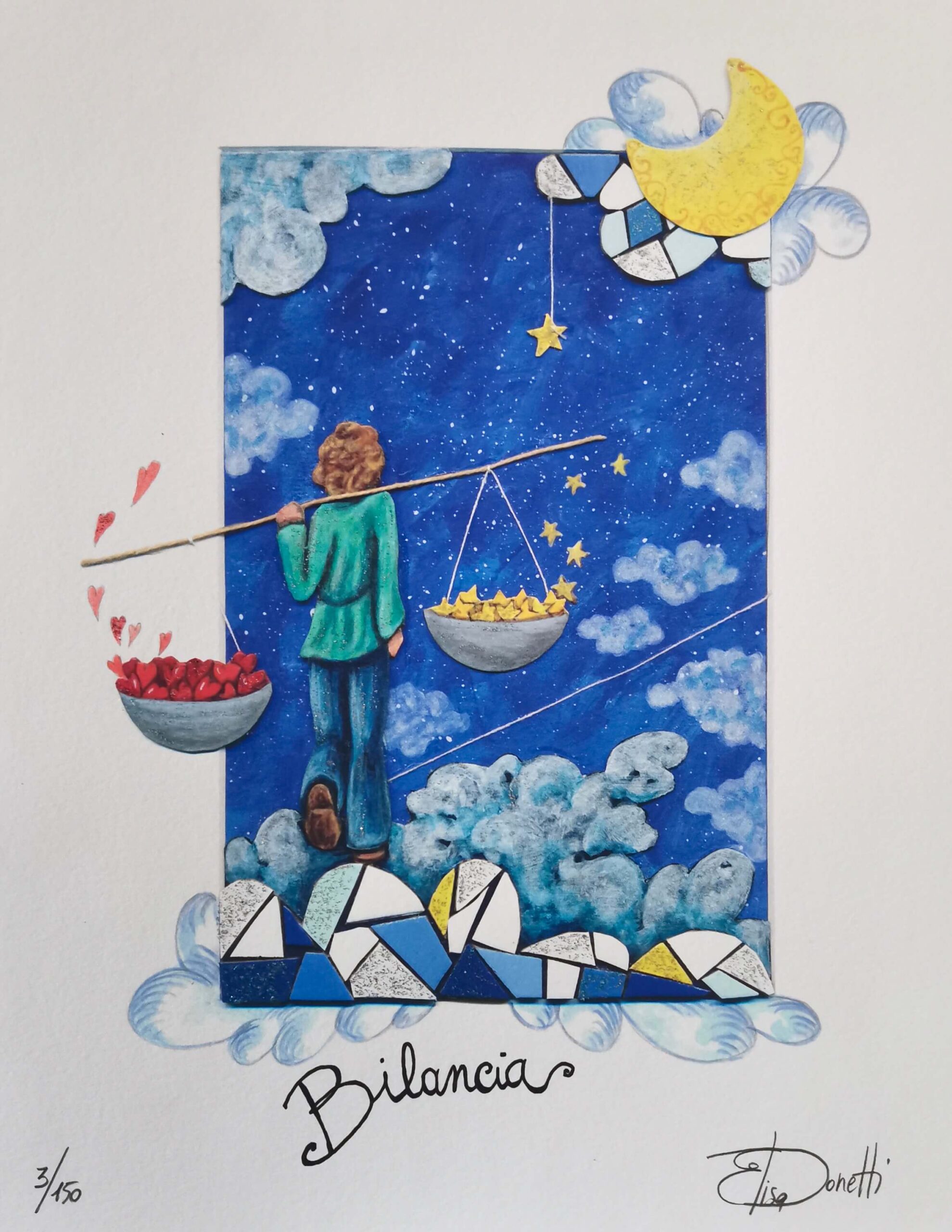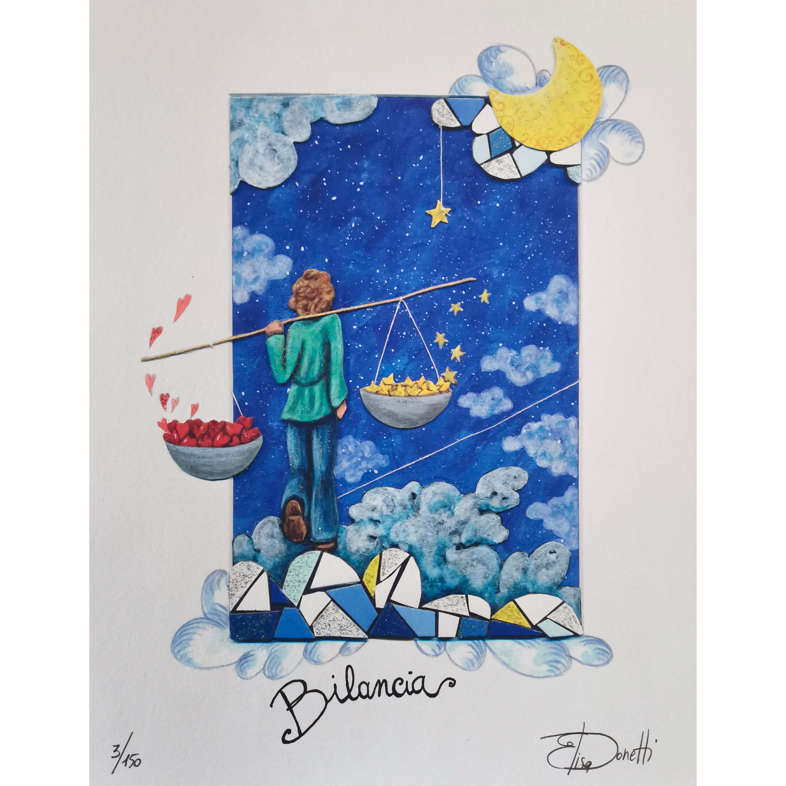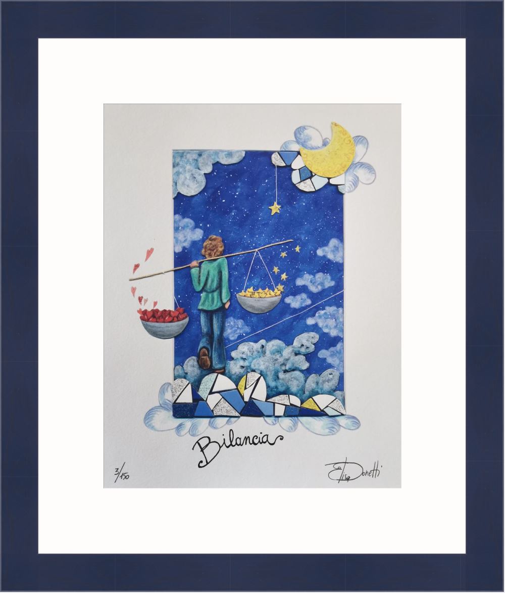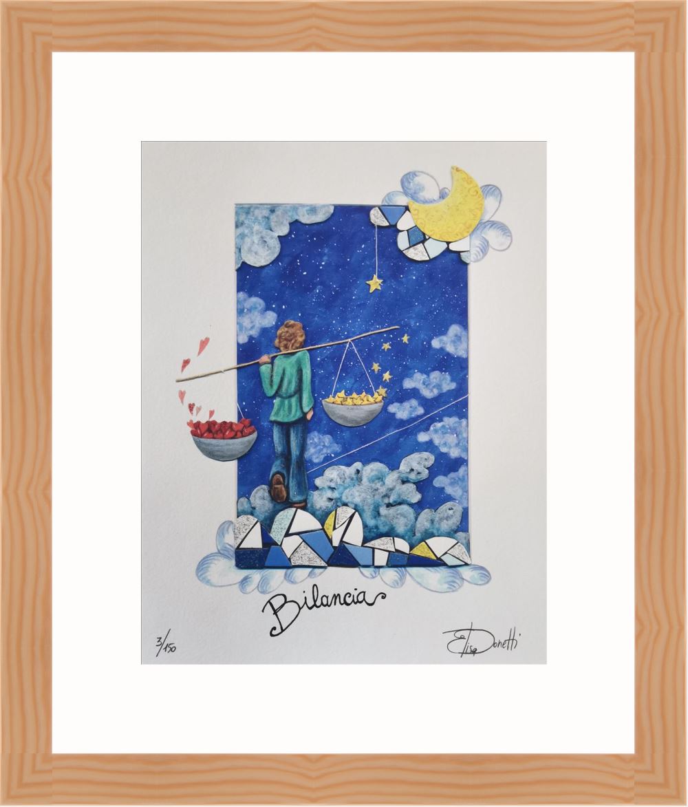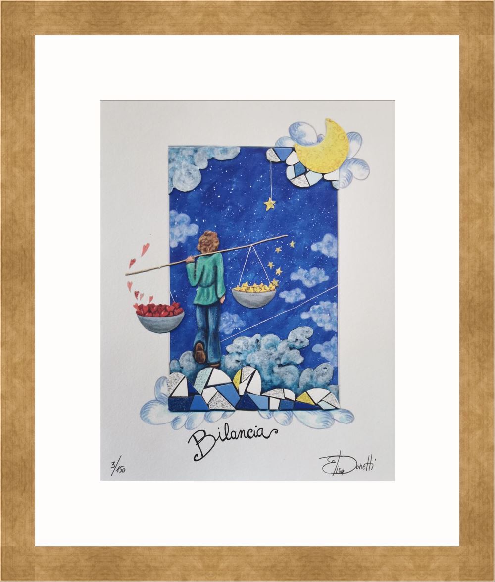 Elisa Donetti “Bilancia” giclée su carta cm. 32×25, edizione in 150 esemplari in numeri arabi firmati e numerati manualmente dall’artista.