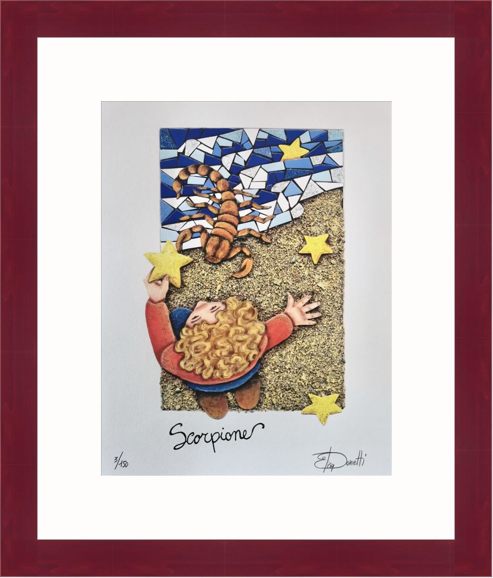 Elisa Donetti “Scorpione” giclée su carta cm. 32×25. Si rilascia certificato di garanzia della nostra galleria ai sensi di Legge del 20.11.1971 n.1062 art. 2.