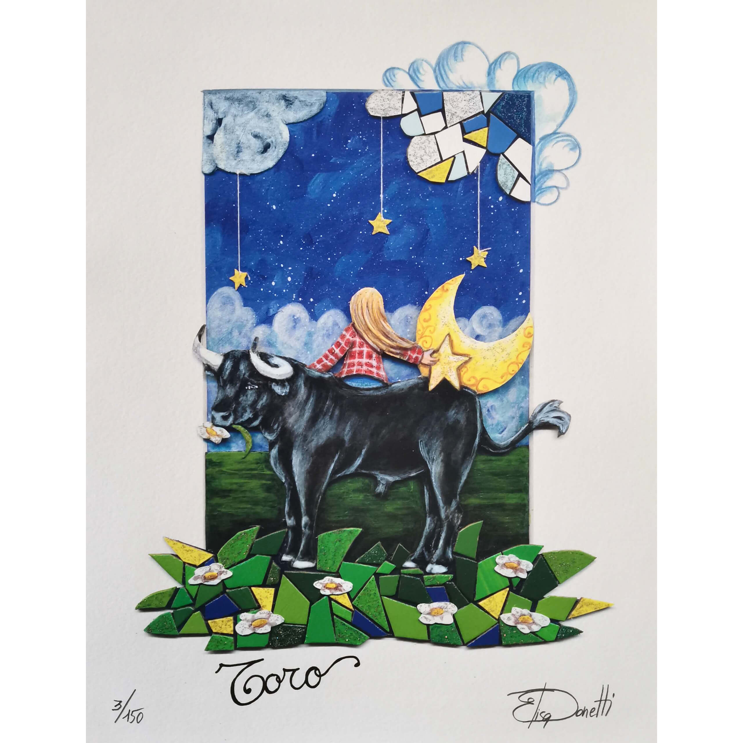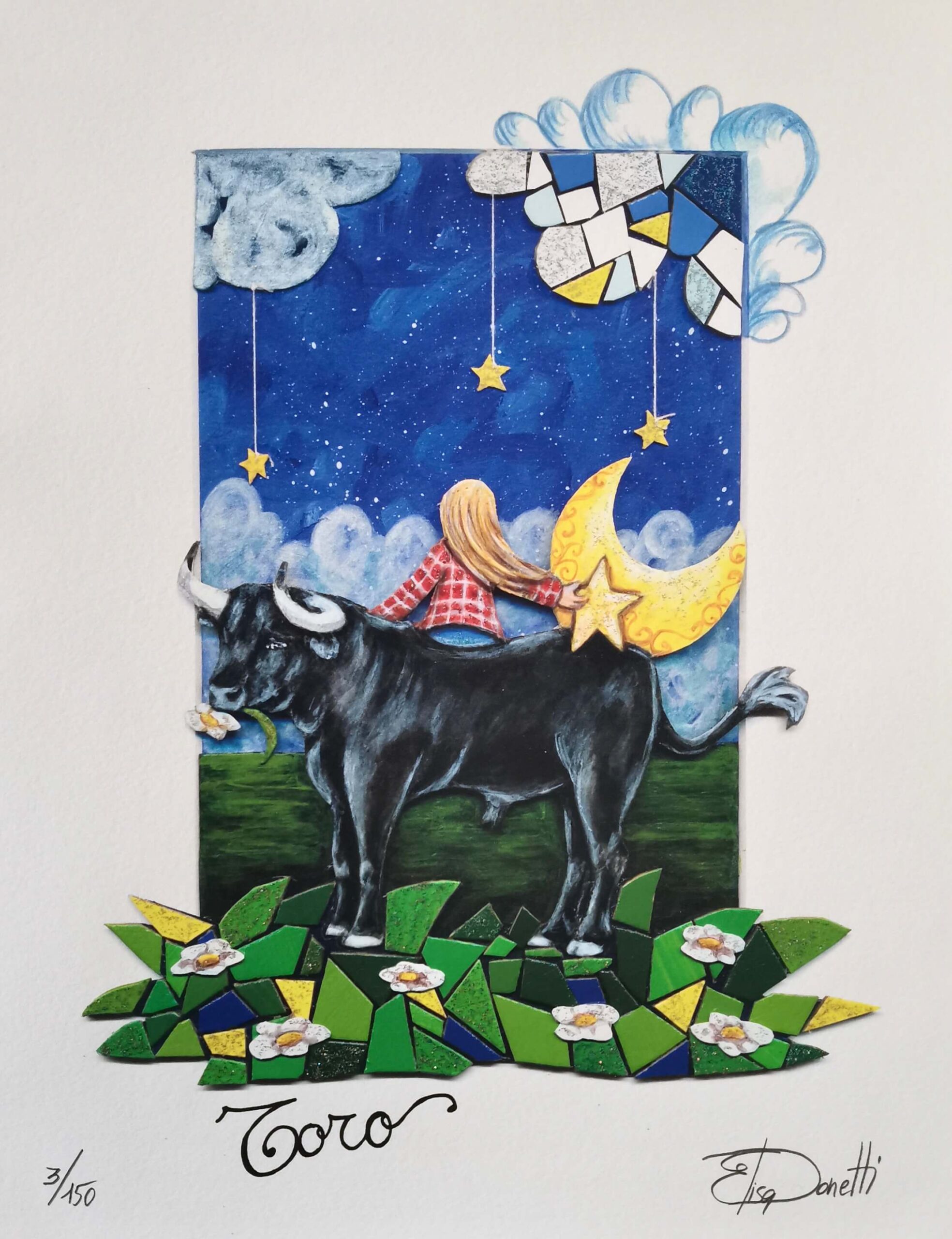 Elisa Donetti “Toro” giclée su carta cm. 32×25, edizione in 150 esemplari in numeri arabi firmati e numerati manualmente dall’artista.
