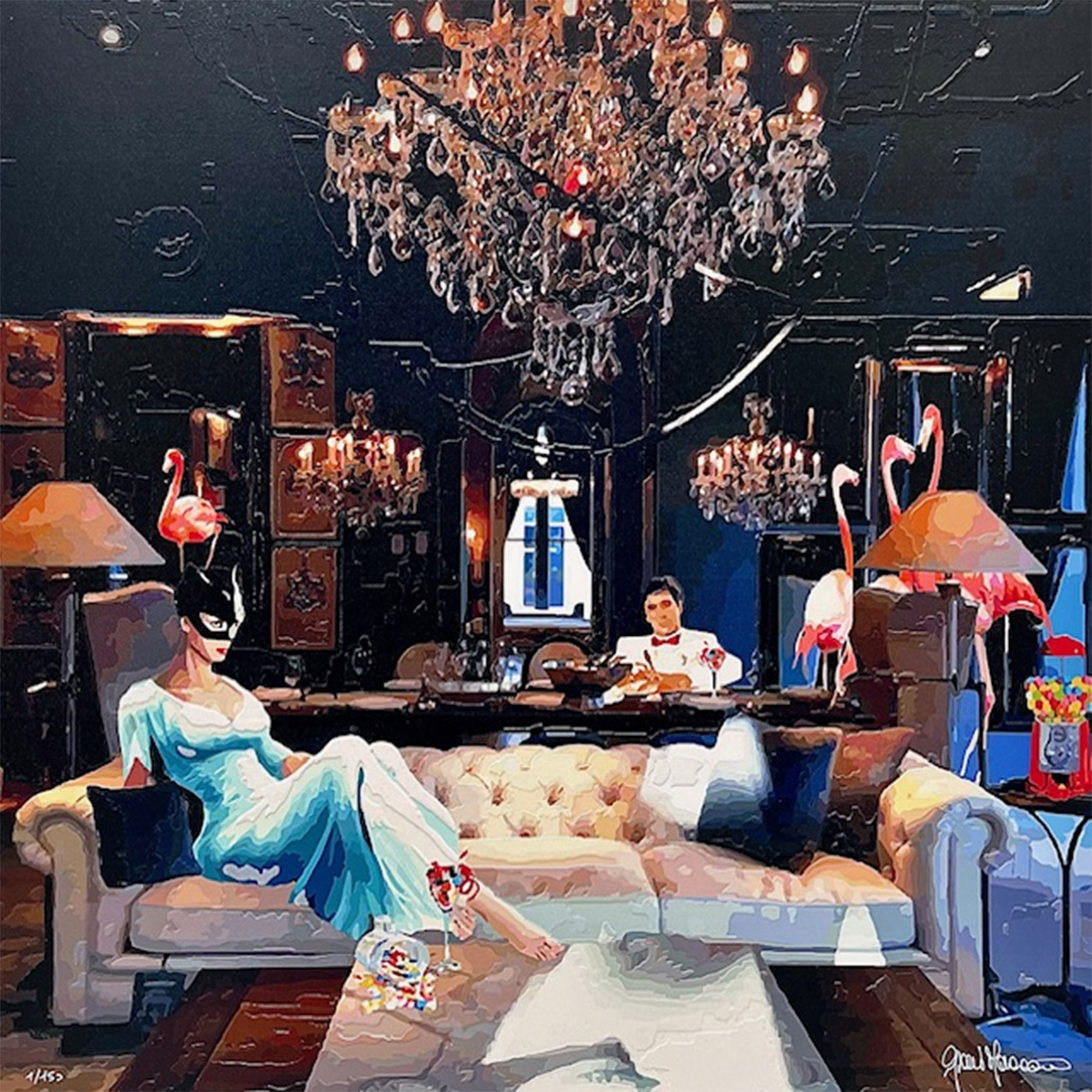 Altro elemento ricorrente nelle sue opere è il fenicottero rosa, simbolo di libertà e fortuna.