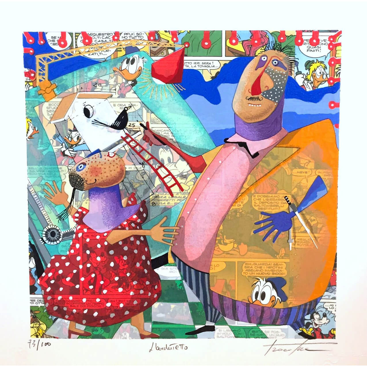 Pino Procopio “L’architetto” serigrafia su carta cm. 33×33, esemplari firmati e numerati manualmente dall’artista.