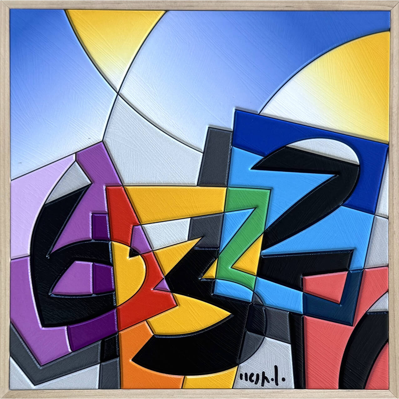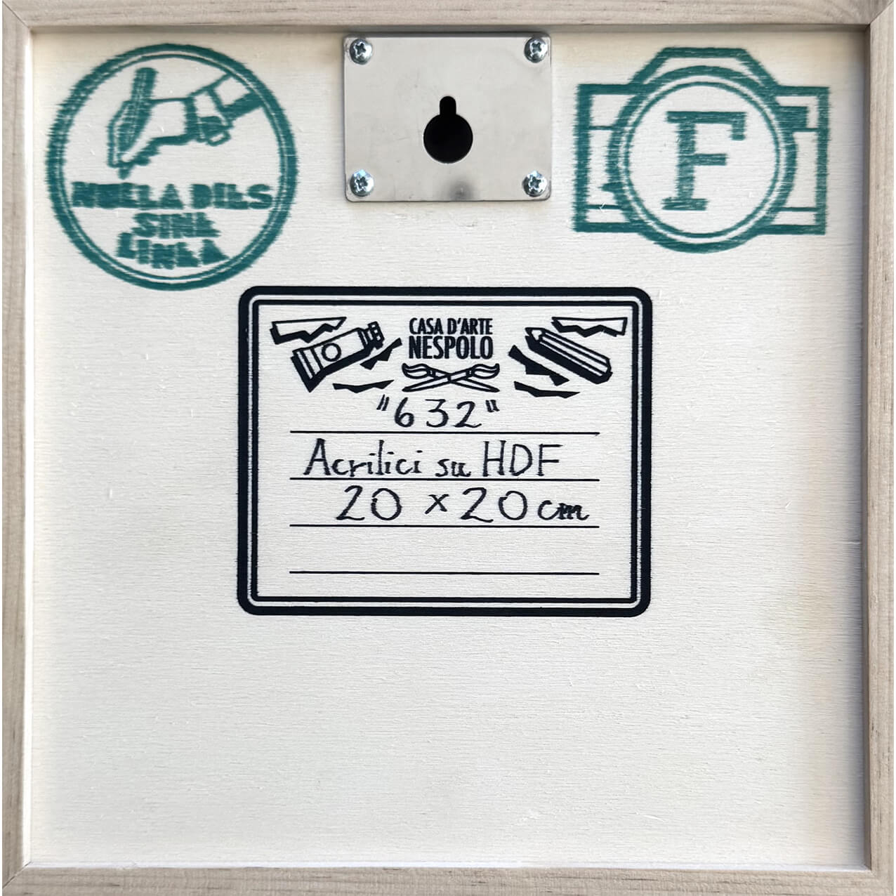 Ugo Nespolo “632” acrilici su legno cm. 20×20, esemplare unico. Opera completa di cornice.